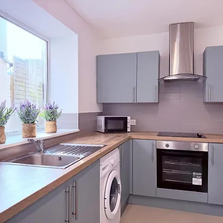 3Br Home For Contractors With Garden & Street Parking apartment features a fully equipped kitchen and looks out onto the garden.